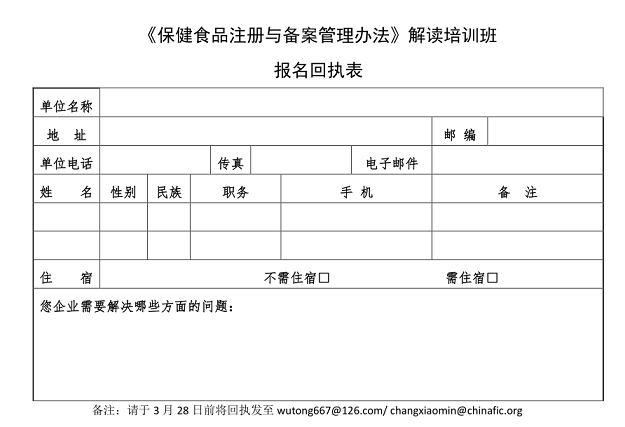 關(guān)于舉辦《保健食品注冊與備案管理辦法》 解讀培訓班的預通知