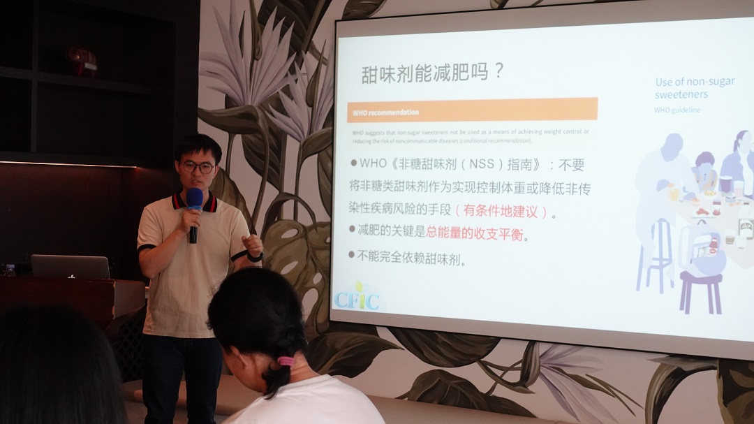 科信中心科技傳播部主任阮光鋒介紹了糖的作用、糖對健康的影響、目前糖的評估情況、關于糖的常見誤區(qū)、甜味劑的優(yōu)點、應用情況及三減常見誤區(qū)等。