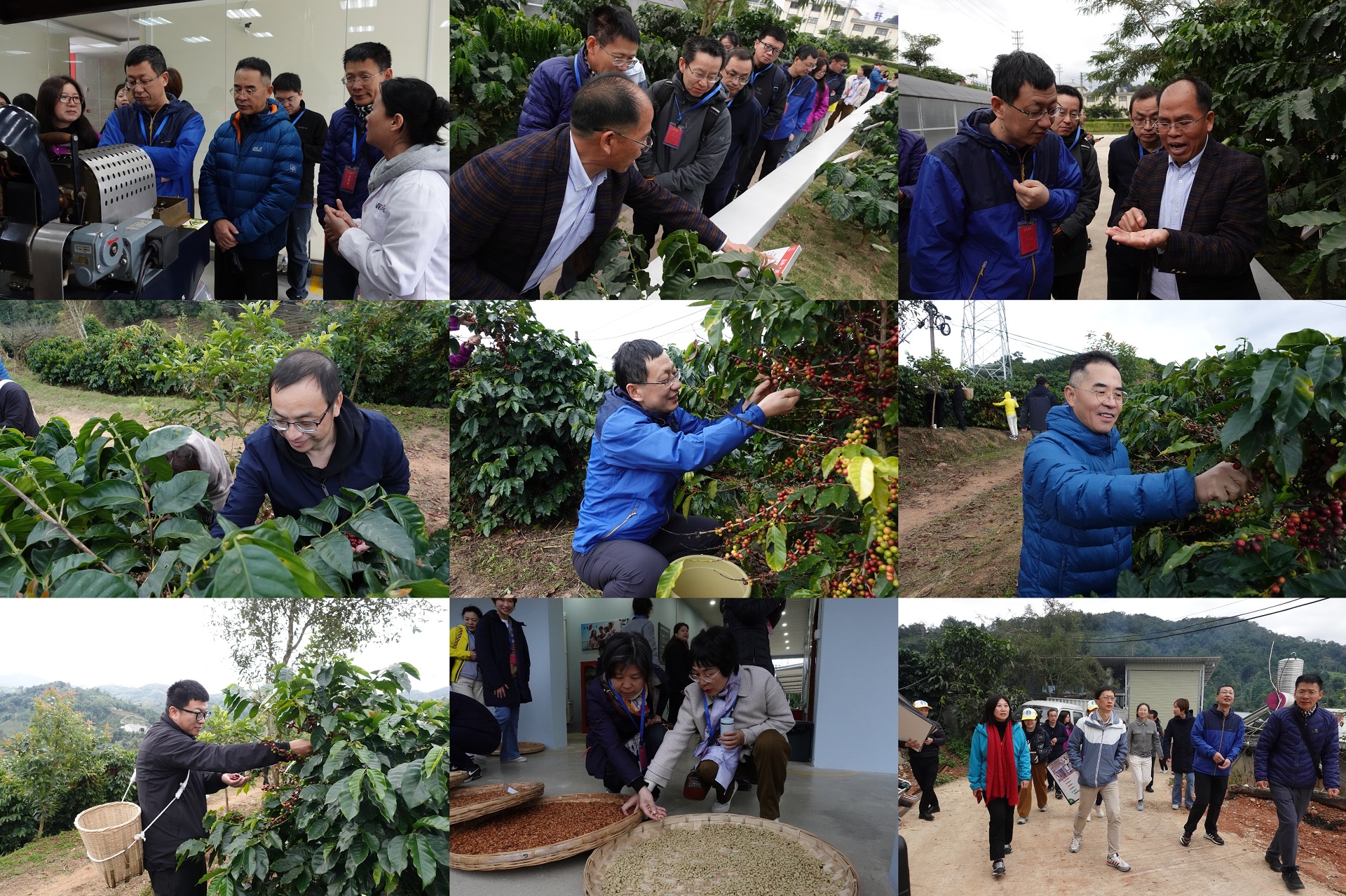 調(diào)研期間,專家組深入田間地頭。當(dāng)?shù)剞r(nóng)藝師對咖啡樹育種移栽、蔭蔽樹、土壤管理、病蟲害防治等田間管理技術(shù)進行了全面的介紹。專家組進行了咖啡豆的人工采收,并參觀了咖啡豆?jié)穹庸S及干法處理車間,與工廠負責(zé)人圍繞咖啡豆加工過程關(guān)鍵控制點及質(zhì)量監(jiān)控等話題充分交流。