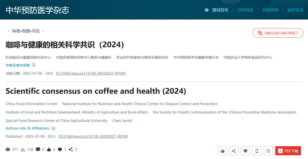 《咖啡與健康的相關(guān)科學共識(2024))》正式發(fā)表