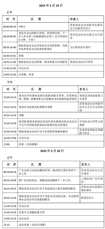 為了宣傳貫徹《中華人民共和國食品安全法》(以下簡稱“食品安全法”)和《中華人民共和國廣告法》(以下簡稱“廣告法”),科信食品與營養(yǎng)信息交流中心(China Food Information Center,CFIC)擬定于5月19-20日在北京召開“《食品安全法》和《廣告法》培訓交流會”,屆時將邀請有關部門領導和專家對《食品安全法》和《廣告法》進行科學解讀。現(xiàn)將會議有關事項通知如下: