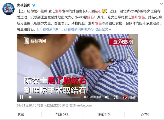 油炸食品因?yàn)槲兜老恪⒑贸?,向?lái)受人們喜愛(ài)。最近有媒體報(bào)道稱(chēng),湖北武漢58歲的陳女士膽囊中取出468顆結(jié)石,原因是因?yàn)槠綍r(shí)愛(ài)...