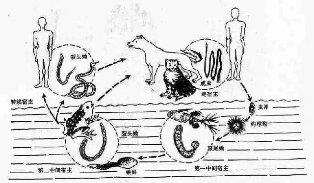 裂頭蚴(plerocercoid)并不是一種寄生蟲的名稱,它是某些種類絳蟲在一個被稱為“中絳期”的發(fā)育階段的幼蟲的總稱,常見的有曼氏裂頭蚴。