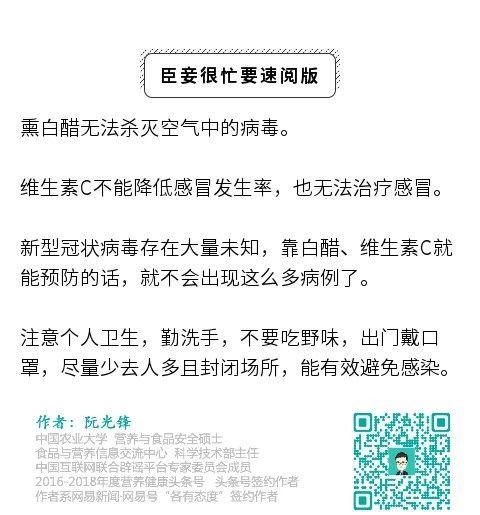 除了播報疫情情況,很多人也在轉(zhuǎn)發(fā)一些預(yù)防新型肺炎的說法。今天很多人都在轉(zhuǎn)一條自稱來自武漢第一線的人,稱把白醋放在暖氣片上可以殺死室內(nèi)的病毒;吃VC泡騰片可以提高免疫力,防止感染病毒。
