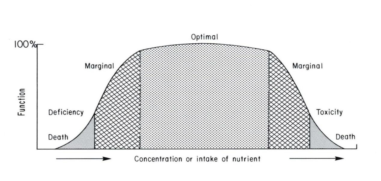 各種營養(yǎng)成分對健康的影響,都是一個鐘形。也就是說,缺乏的時候,對健康不利;但是太多了,對健康也不利。我們常說的“過猶不及”,就是這個道理。在“充足”和“太多”之間,不同的營養(yǎng)成分緩沖范圍不同。有的范圍很寬,比如維生素 C,一個 1 到 3 歲的孩子每天 15 毫克就足夠了,但是多到 400 毫克也沒有副作用。而 15 毫克維生素,只需要一個中等大小的桔子或者獼猴桃就足夠了,很多蔬菜也含量很高。這就意味著,只要孩子的飲食習(xí)慣不是很離譜,就不會缺乏維生素 C。當(dāng)然,如果喜歡,再吃進(jìn)幾百毫克也不會有害。而有的成分緩沖范圍比較小。很典型的比如鋅,1 到 3 歲的孩子每天 3 毫克就足夠,而 7 毫克是“安全上限”。這種情況下,盲目地給孩子“補(bǔ)充”鋅,超過安全上限、從而危害孩子的可能性可能跟鋅不足的可能性一樣大。