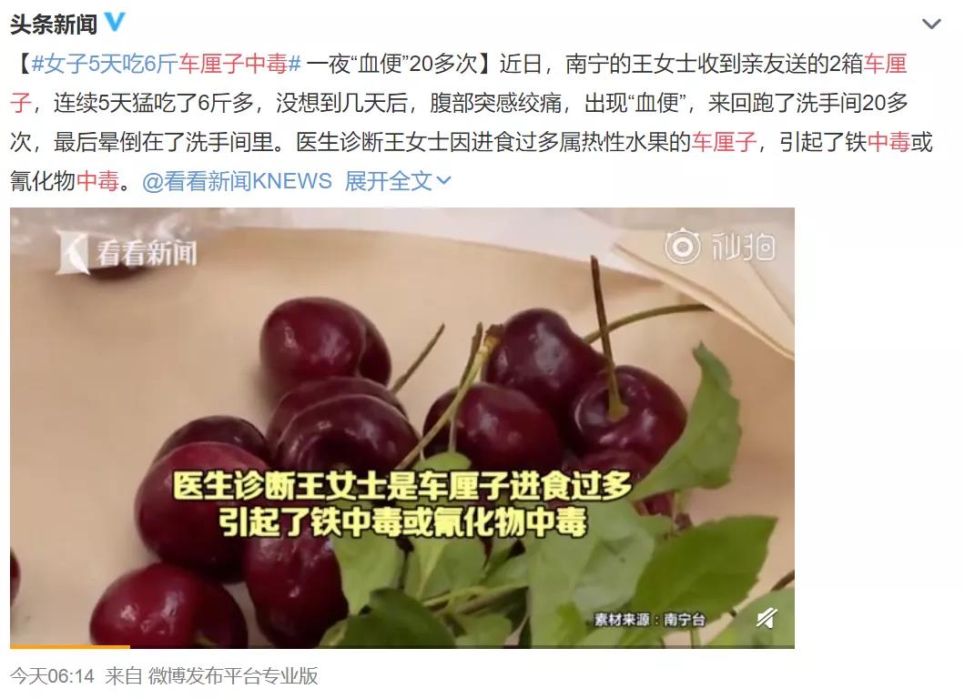 1月25日,有新聞爆出一女子5天吃6斤車?yán)遄又卸?,一?ldquo;血便”20多次。