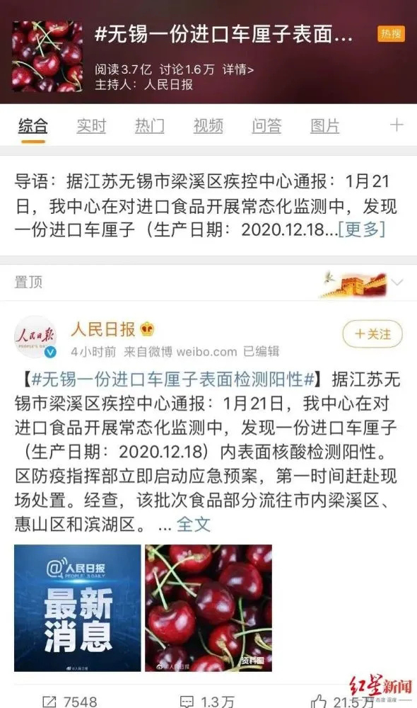 前幾日,進(jìn)口車?yán)遄咏祪r的消息才讓不少人嘗了鮮,而此次車?yán)遄颖砻姹槐龊怂釞z測陽性,也讓廣大網(wǎng)友直呼“有點怕”,該新聞一度登上微博熱搜,截至發(fā)稿前,閱讀量已超3億。