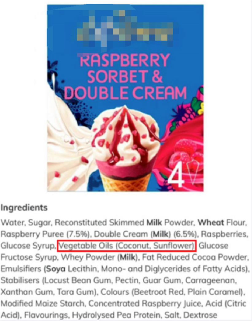 總有些人覺得“外國月亮圓”,其實植脂冰激凌也不是中國的特產(chǎn),外國冰激凌里照樣會用植脂,也沒看到誰說這樣的冰激凌就不好啊。我在網(wǎng)上看了一下,國外也很多冰激凌要用到椰子油、棕櫚油(下面有3個例子)。當(dāng)然,由于國外的標(biāo)準(zhǔn)和我們不一樣,所以也不知道具體比例,但是看營養(yǎng)成分表里面的蛋白質(zhì)、脂肪等指標(biāo),跟國內(nèi)也沒啥本質(zhì)差異。