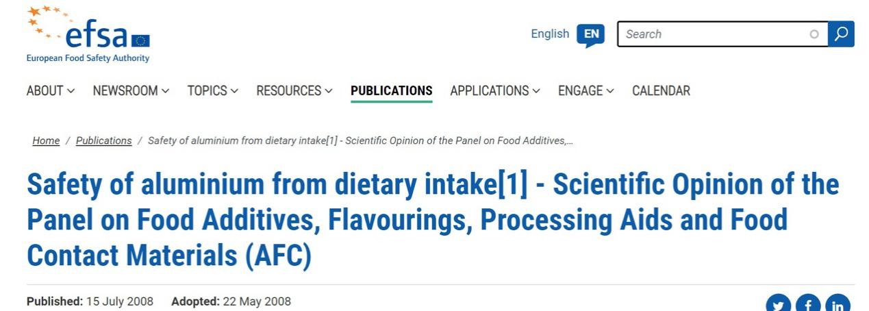 歐盟、中國(guó)和世界其他國(guó)家一樣,并不把鋁作為污染物管理。根據(jù)風(fēng)險(xiǎn)評(píng)估的結(jié)果,控制鋁主要是規(guī)范含鋁食品添加劑的使用,而不是控制食物中天然含有的鋁。