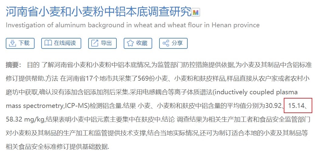 鋁是地殼中含量最高的金屬元素,因此天然的存在于環(huán)境、水和各類食物中,嬰幼兒輔食中用到的小麥粉、蔬菜粉等也不例外。一些科學(xué)研究對(duì)小麥及小麥粉中本底的鋁含量進(jìn)行過測(cè)定,比如下圖的研究。所以嬰幼兒輔食中的鋁顯然是天然本底,而不是生產(chǎn)過程中額外添加。