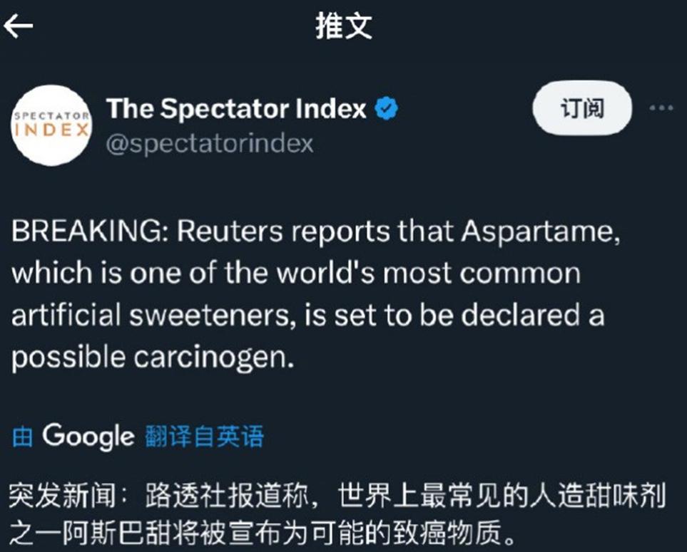 今天出了一條新聞,路透社報(bào)道稱,世界上最常見的人造甜味劑之一阿斯巴甜將被宣布為可能的致癌物質(zhì)。由于阿斯巴甜廣泛用于無...