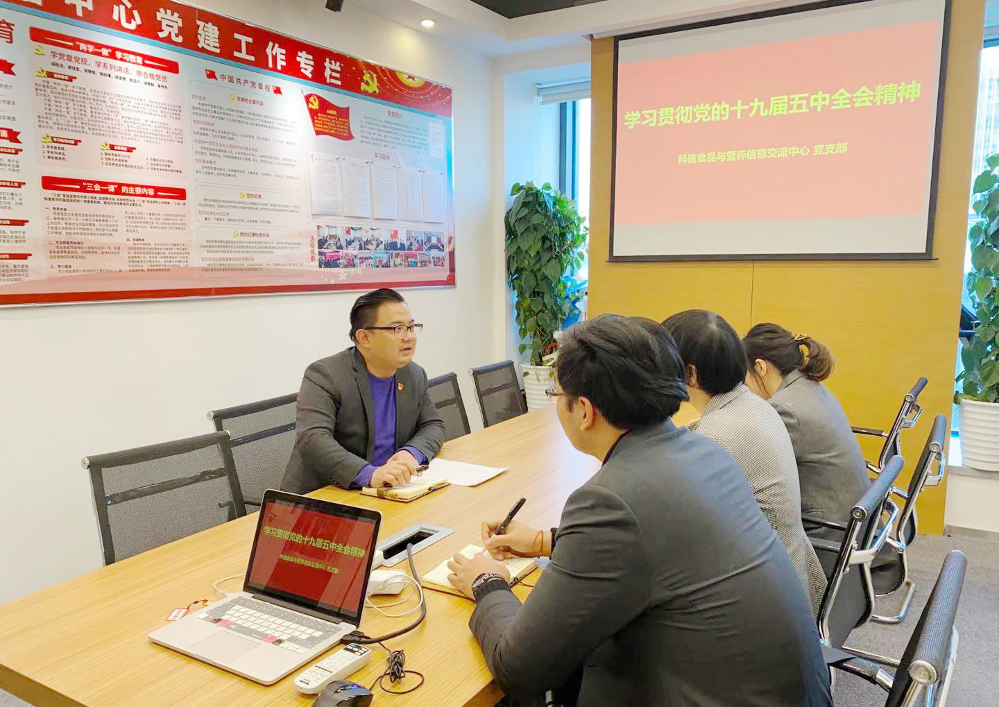 10 月 30 日上午,科信食品與營養(yǎng)信息交流中心組織全體黨員集體學習,第一時間傳達學習黨的十九屆五中全會精神、集中學習《中國共產(chǎn)黨第十九屆委員會第五次全體會議公報》和人民日報社論。中心黨支部書記吳桐主持學習。