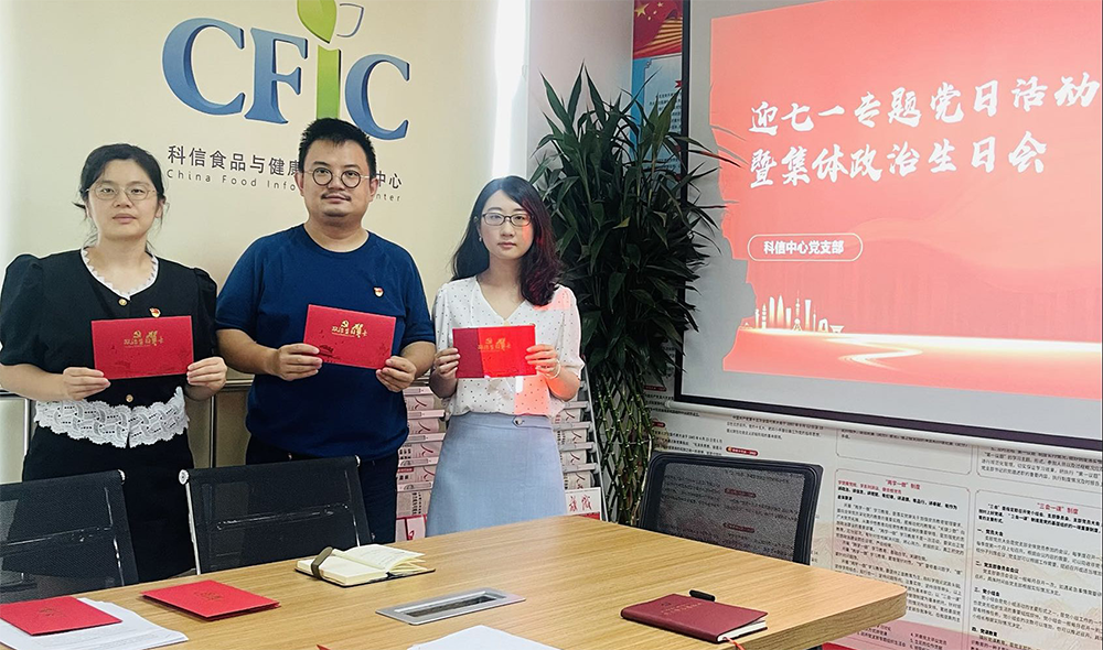 活動(dòng)首先由吳書記代表科信中心黨支部向每位黨員送上特制的“政治生日賀卡”,并送上祝福和希望寄語。賀卡上印有入黨誓詞,清晰記錄了黨員的入黨時(shí)間,一日入黨、一生忠誠,鼓舞激勵(lì)著黨員干部不忘光輝歷程,牢記初心使命,積極擔(dān)當(dāng)作為。吳書記在發(fā)言時(shí)強(qiáng)調(diào):“為黨員過‘政治生日’是‘不忘初心、牢記使命’長效機(jī)制的重要內(nèi)容,是加強(qiáng)黨員思想政治教育、強(qiáng)化黨員意識(shí)的有效載體,支部為全體黨員同志集體過‘政治生日’,發(fā)放了政治生日賀卡。這張?zhí)貏e的賀卡,讓大家感受到來自組織的關(guān)懷、‘家’的溫暖的同時(shí),也以莊重的儀式感提醒黨員干部時(shí)刻不忘初心,牢記使命,激勵(lì)黨員同志更好地踐行黨員宗旨,堅(jiān)定信念,砥礪前行”。隨后,每位黨員分享入黨初心,講述自己的入黨故事。大家還紛紛表示:“這是組織送給我們的一份特別禮物,溫暖著每一顆心靈,滋潤著每一片心田。”作為一名黨員,將把“紅色賀卡”轉(zhuǎn)化為扎扎實(shí)實(shí)干好本職工作的強(qiáng)大動(dòng)力,永葆為民服務(wù)初心,以頑強(qiáng)的意志、必勝的信心、全部的精力,積極投身到構(gòu)建新時(shí)代食品信息交流平臺(tái)高質(zhì)量發(fā)展新格局中,忠于職守、勇?lián)姑⑶趭^敬業(yè)、積極工作,為我國公眾舌尖上的健康做出更多貢獻(xiàn)。