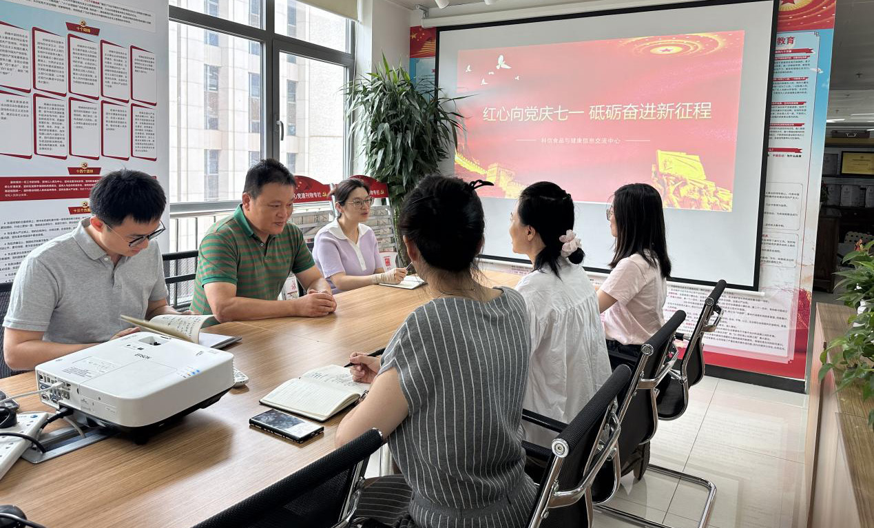 為慶祝中國共產黨成立 103 周年,推動黨紀學習教育走實走深,激勵黨員同志們踐行初心使命,提振干事創(chuàng)業(yè)精神,7 月 1 日,科信食品與健康信息交流中心黨支部組織全體黨員開展了“紅心向黨慶七一砥礪奮進新征程”主題黨日活動。通過觀看紅色影片、線上觀摩學習中國共產黨紀律建設歷史陳列數(shù)字展館、感悟分享發(fā)言等多種活動,教育和激勵廣大黨員要賡續(xù)紅色血脈、汲取奮進力量,為推動“健康中國”建設履職盡責。