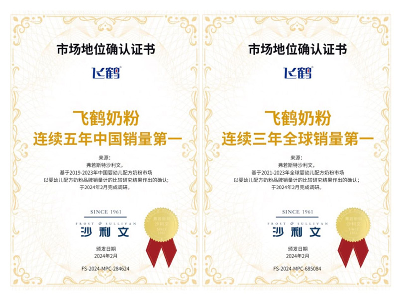 近日,國際權(quán)威調(diào)研機(jī)構(gòu)弗若斯特沙利文,向飛鶴頒發(fā)多項(xiàng)“第一”認(rèn)證證書。認(rèn)證信息顯示,2019 年 -2023年度,飛鶴奶粉在中...