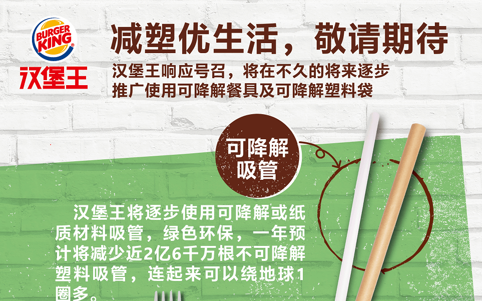 近日,漢堡王宣布正式啟動(dòng)環(huán)保戰(zhàn)略,除了積極參與環(huán)保公益,還計(jì)劃在不久的將來逐漸用可降解材質(zhì)的環(huán)保餐具替代塑料一次性餐...