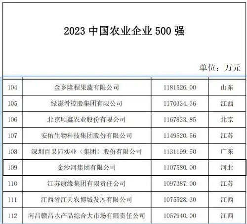 為全面、客觀、系統(tǒng)展現(xiàn)我國(guó)農(nóng)業(yè)企業(yè)發(fā)展情況,營(yíng)造農(nóng)業(yè)企業(yè)參與鄉(xiāng)村振興和建設(shè)農(nóng)業(yè)強(qiáng)國(guó)的良好社會(huì)氛圍,農(nóng)民日?qǐng)?bào)社發(fā)起2023 中國(guó)農(nóng)業(yè)企業(yè) 500 強(qiáng)評(píng)價(jià)活動(dòng),經(jīng)信息匯集、嚴(yán)格審核、專家評(píng)議等程序,形成了《2023 中國(guó)農(nóng)業(yè)企業(yè) 500 強(qiáng)》,金沙河集團(tuán)入選中國(guó)農(nóng)業(yè)企業(yè) 500 強(qiáng)。