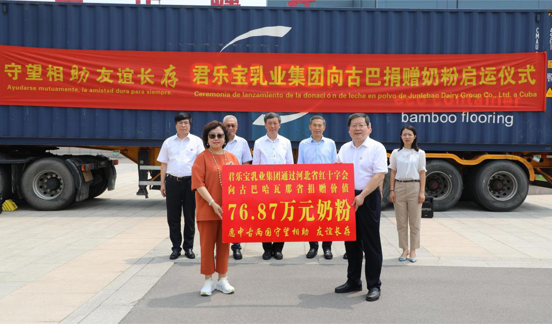 7月10日,君樂寶乳業(yè)集團(tuán)向古巴捐贈(zèng)奶粉啟運(yùn)儀式在君樂寶奶粉工廠舉行。河北省商務(wù)廳一級(jí)巡視員任會(huì)君,河北省外辦二級(jí)巡視員...