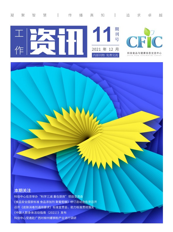 本期關(guān)注:科信中心 2021 年工作總結(jié)會在京召開,科信中心完成“食品營養(yǎng)健康信息輿情監(jiān)測與應(yīng)對指南”結(jié)題,食品安全科普短視頻項目正式啟動,群策群力開展消毒餐(飲)具標(biāo)準(zhǔn)修訂工作...