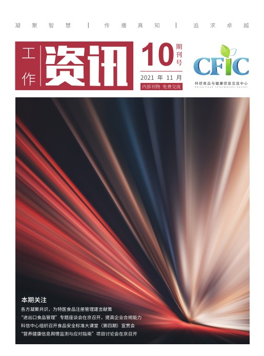 本期關注,各方凝聚共識,為特醫(yī)食品注冊管理建言獻策,“進出口食品管理”專題座談會在京召開,提高企業(yè)合規(guī)能力,科信中心組織召開食品安全標準大課堂(第四期)宣貫會...